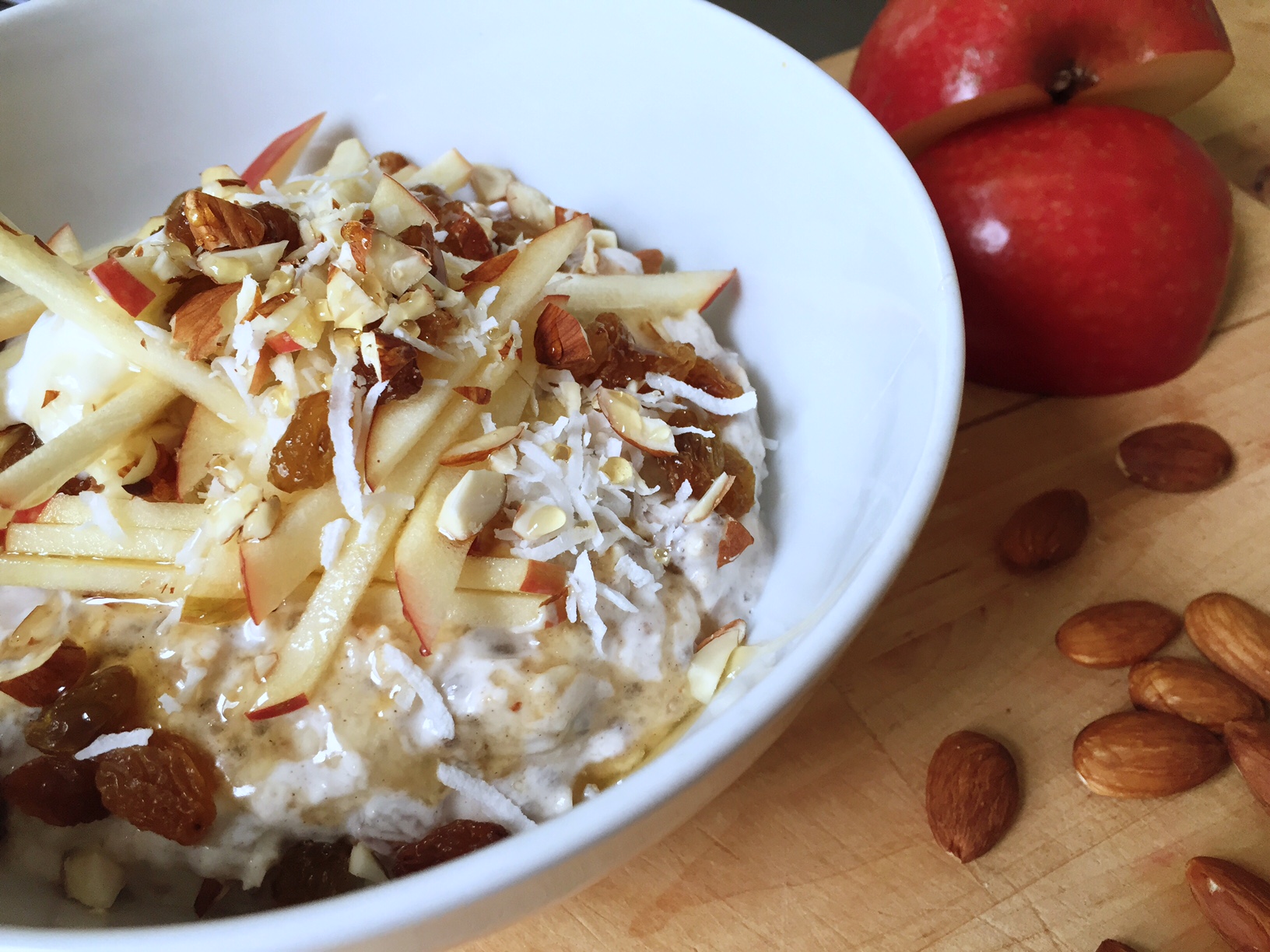 Coconut & Almond Milk Bircher – vegan, dairy-free, gluten-free, sugar-free.