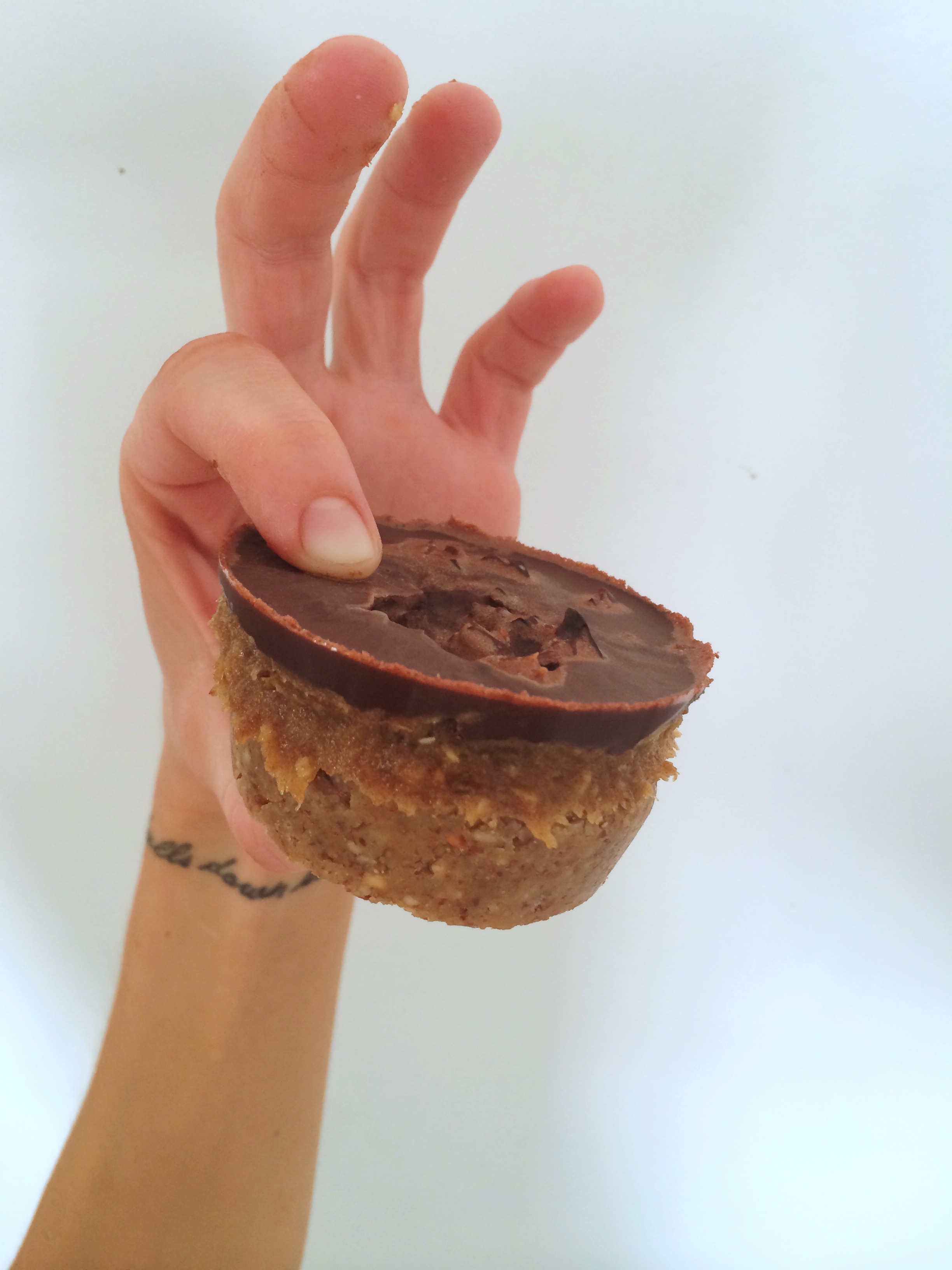1. Add all ingredients to a small saucepan over low heat and keep stirring. When all ingredients have melted and are well whisked together, pour the chocolate over the already-made layers in the muffin-form. Back into the freezer and let them set for at least 2 hours before you eat them. Keep them in the freezer at all times and ENJOY :)